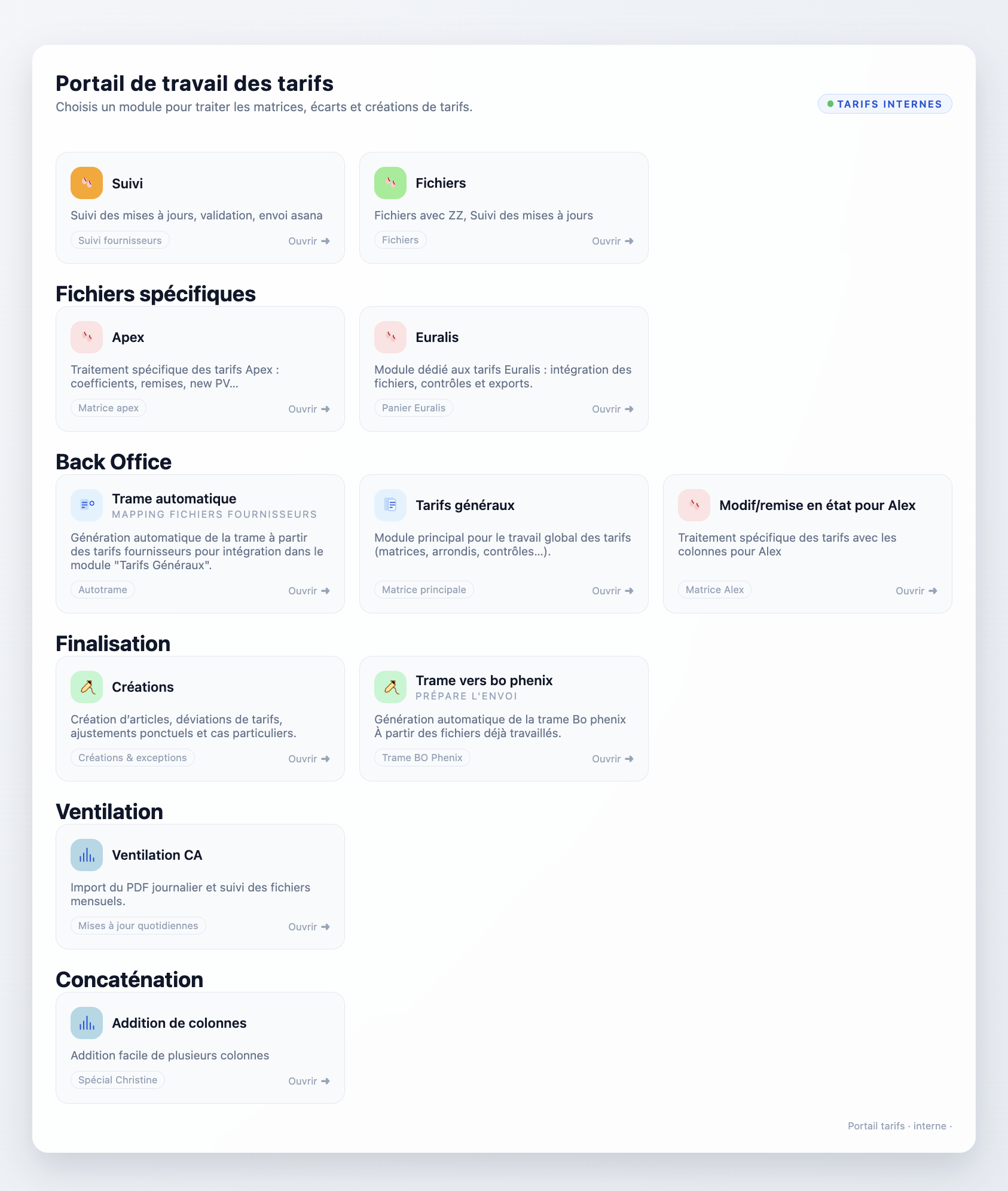Exemple: Création d'un portail de travail des base tarifaires - 20% de gain de temps sur les créations et actualisations tarifaires